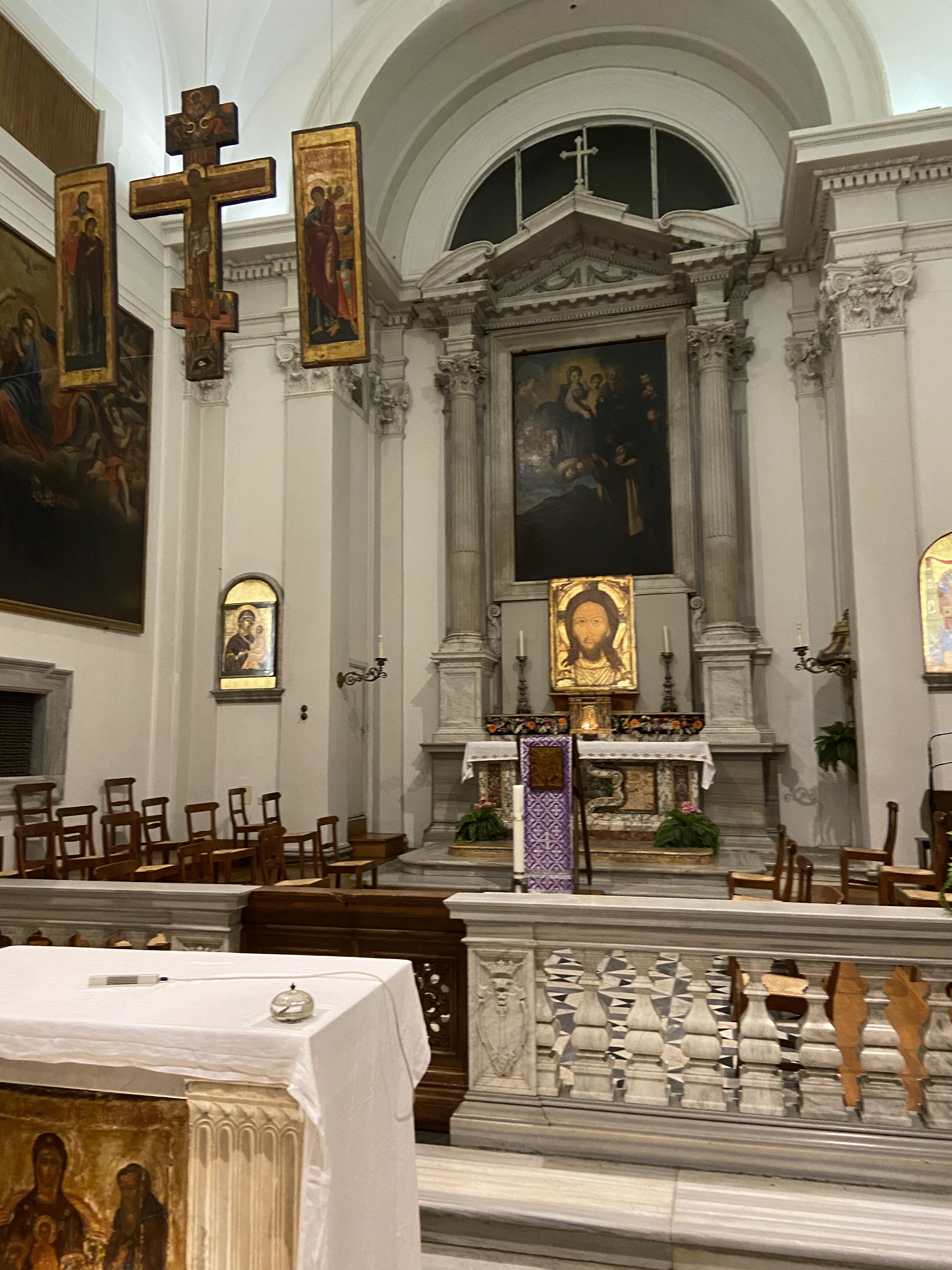 I had a nice visit to the Sant’Egidio Community headquarters this evening. Founded in 1968 they are a Catholic lay association located in 70 countries and dedicated to prayer, peace, and service with the poor. In 1973 they were granted use of a beautiful former Carmelite monastery and adjoining church in the Trastevere neighborhood in Rome. The Sant’Egidio Community was awarded the World Methodist Peace Prize in 1997 and have historically a close relationship with Methodists.