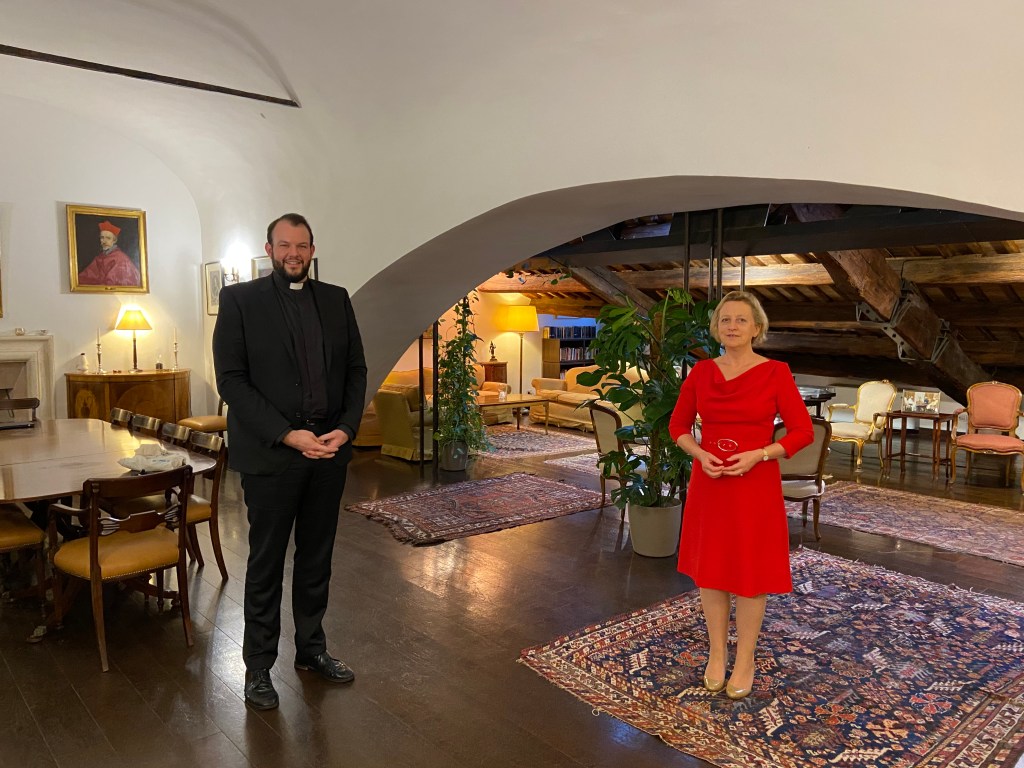 MEOR director Matthew A. Laferty met H.E. Sally Axworthy MBE, British ambassador to the Holy See, to discuss the work of the Methodist Ecumenical Office Rome, the role of women in Methodist churches, and issues affecting Methodists globally. He also presented Ambassador Axworthy with a book on women in the early Methodist movement in observance of International Women’s Day.