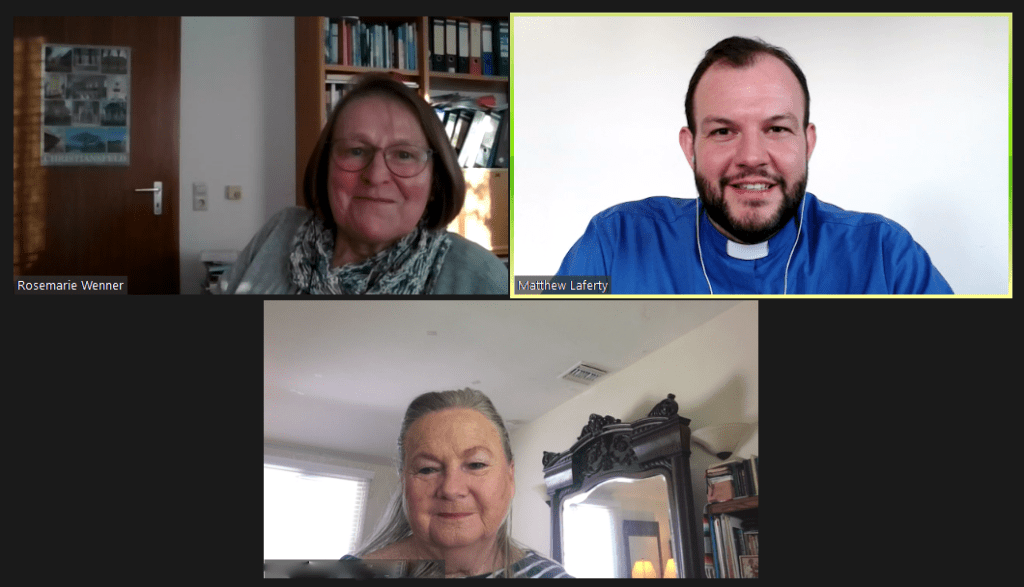 In a virtual encounter on 24 March 2021, the Rev. Matthew A. Laferty, director of the Methodist Ecumenical Office Rome, and Bishop Rosemarie Wenner, Geneva Secretary of the World Methodist Council, met Bishop Mary Ann Swenson, vice moderator of the World Council of Churches central committee, to discuss the work of the World Council of Churches, programs from the Geneva and Rome offices, and ways to strengthen the Methodist/Wesleyan engagement in international ecumenism.