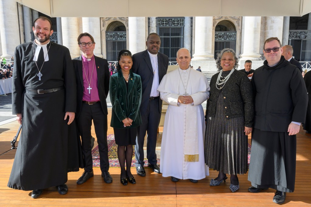 Part of my ministry is to foster encounter between senior church leaders. Bishop Knut Refsdal (second left), bishop of the Nordic-Baltic-Ukraine Area of The United Methodist Church, and Rev. Myron Howie (center), treasurer of the World Methodist Council, met Pope Leo XIV following the General Audience on Wednesday, 26 November 2025. They were accompanied by Rev. Howie’s spouse Rev. Jules Dunham Howie (second right) and child Ms. Grace Howie (third left), and Fr. Martin Browne OSB (right) of the Vatican’s Dicastery for Promoting Christian Unity. Rev. Myron Howie and Rev. Jules Dunham Howie are ordained ministers of the African Methodist Episcopal Church. Photo © Vatican Media