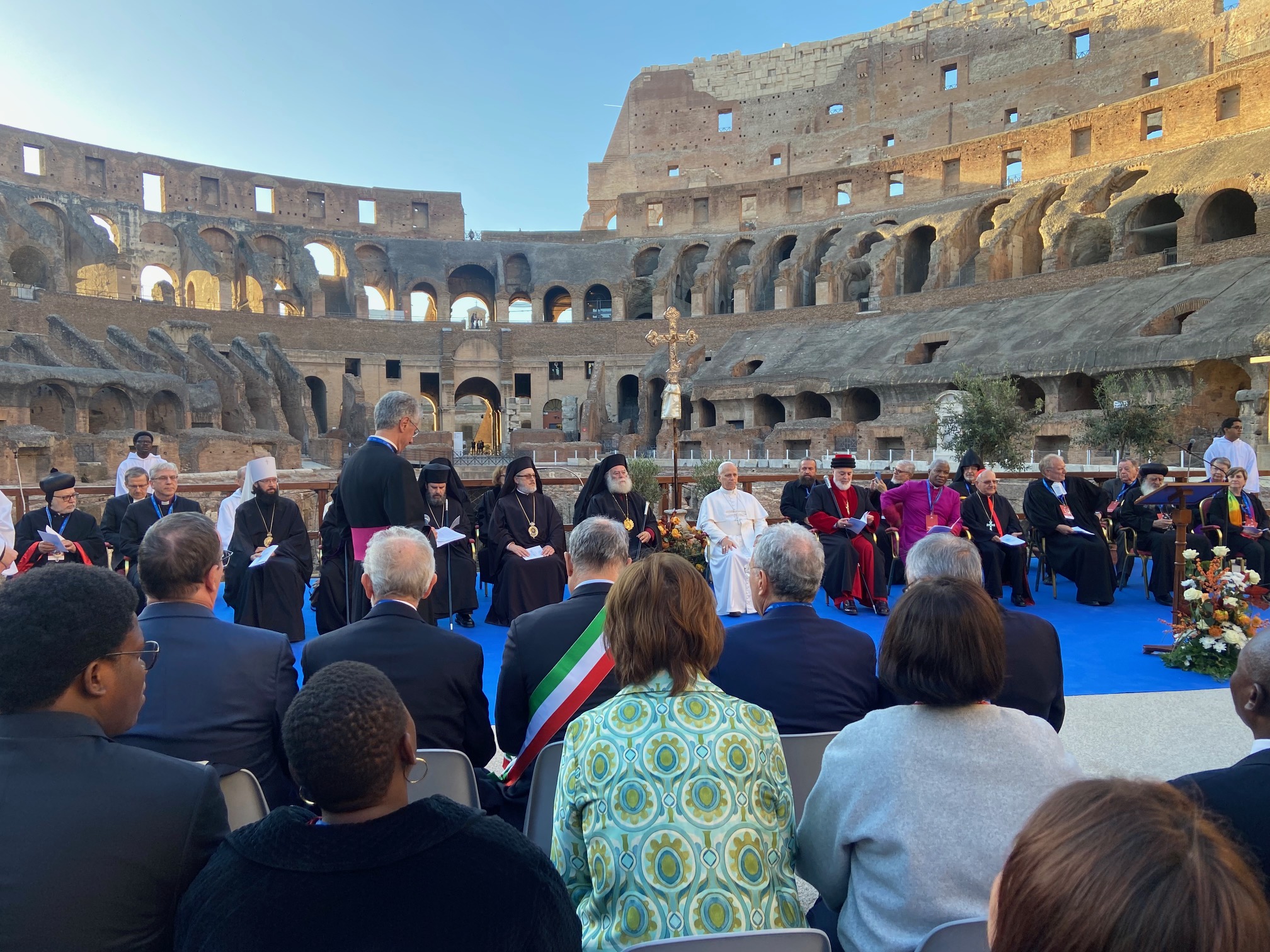 I attended the Sant’Egidio’s annual International Meeting of Peace at the end of October in Rome. The gathering brings together senior religious leaders from around the world and from all major religions for discussion, encounter, and shared learning. I was present with several other Methodists including Bishop Debra Wallace-Padgett, president of the World Methodist Council, Rev. Alesssandra Trotta, moderator of the Methodist-Waldensian Church of Italy, and Lord Griffiths of Burry Port FLSW, a minister of the Methodist Church of Great Britain and member of the House of Lords (UK). In a panel discussion on Christian unity, Archbishop Sahak Mashalian of the Armenian Apostolic Church spoke about the experience of his church in the Armenian genocide in the 20th century and disunity among Christians. He spoke powerfully that those who oppress and kill Christians normally do not ask if we have achieved unity with other Christians nor do they seek to understand if we are Protestant, Catholic, or Orthodox. They simply ask if we are Christian. Our differences that lead to disunity as Christians means nothing for persecution. At the conclusion of the conference, the Christian participants prayed together inside the Colosseum in Rome, a site according to church tradition associated with Christian persecution. Among the other church leaders present for the prayer service were Pope Leo XIV of the Catholic Church, Patriarch Mar Awa III from the Assyrian Church of the East, and Bishop Henrik Stubkjær of the Lutheran World Federation. Read about the meeting.